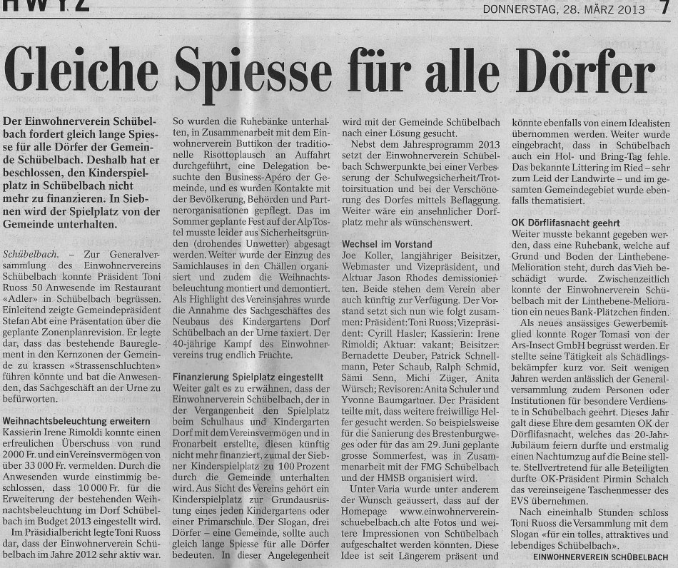 Die Informationen und Tätigkeiten des Einwohnervereins Schübelbach werden ständig erweitert und aktualisiert.