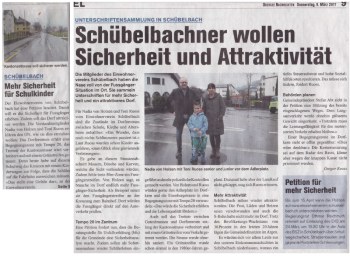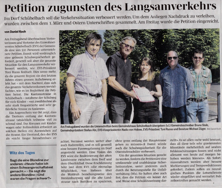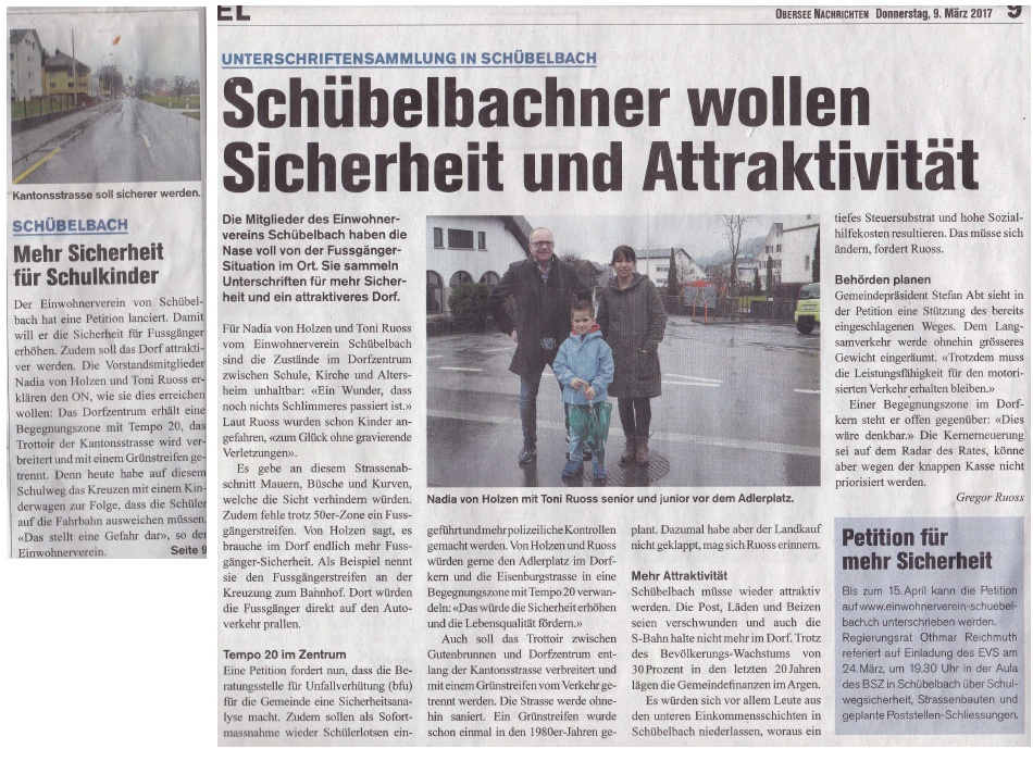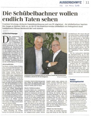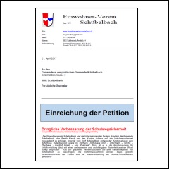 die dringliche Petition "Schulwegsicherheit in Schübelbach" zuhanden der Gemeinde, des Bezirks Marchs und des Kantons Schwyz ist abgeschlossen. Ingesamt 531 Mitunterzeichnende unterstützen das Anliegen.